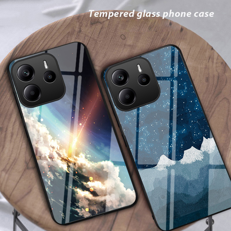 Phone case Redmi Note 14 Couple Starry Moon Mirror Glass Protector Meteor Start Back Cover Redmi Note 14Pro + Case