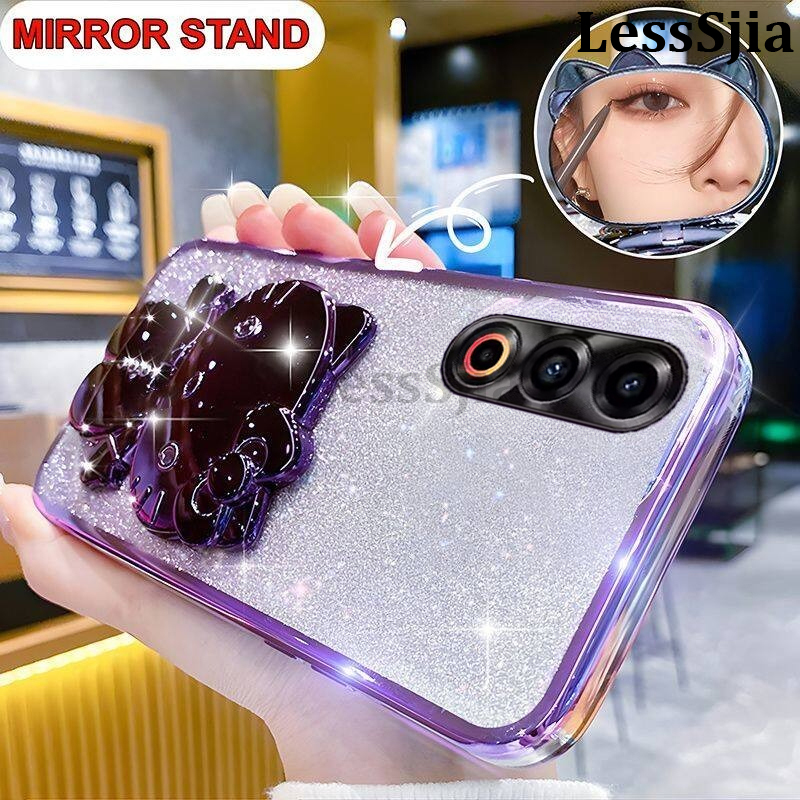 Phone cover Meizu 21 Pro 21 Note 20 Pro Back case Camera Protection Semi Transparent Soft Silicone Rabbit bracket Shockproof Exquisite Glitter Powder for Meizu 20 Pro Meizu 21 Note Pro Back Cover