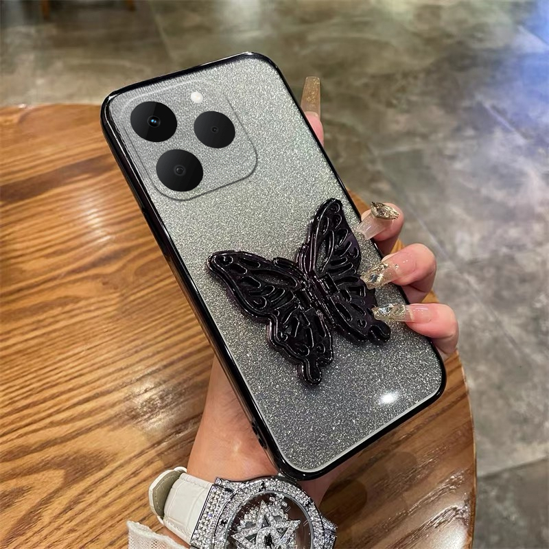 Phone cover Realme 15T Back case with Cute Butterfly Stand Luxury Slim Gradient Clear Plating Glitter Girls For Realme 15T Phone cases