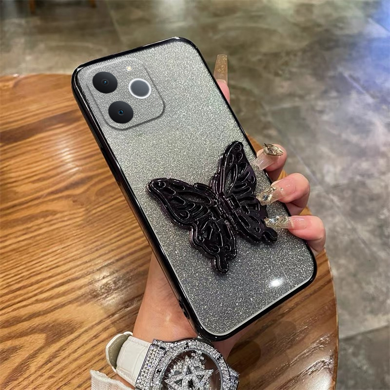 Phone cover Realme Note 70 Back case with Cute Butterfly Stand Luxury Slim Gradient Clear Plating Glitter Girls For Realme Note 70 Phone cases