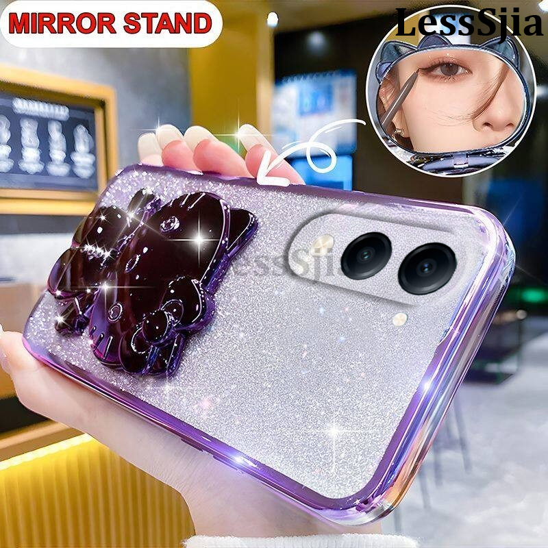 Phone cover Vivo Y04S / Y04 Back case Camera Protection Semi Transparent Soft Silicone Rabbit bracket Shockproof Exquisite Glitter Powder for Vivo Y04S / Y04 Phone cases