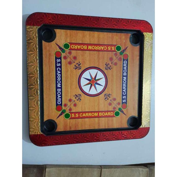 Plastic Carrom Board (Both side play : One side Carrom board & Other side Ludu ).Board game - Multi color - (12 *12) Inch