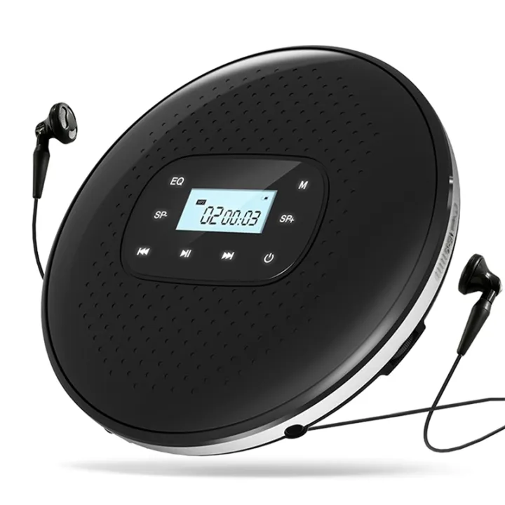 Portable CD Walkman Rechargeable Intelligent Touch Screen CD Player Digital Display Stereo Speaker for Student Easy to Use Black