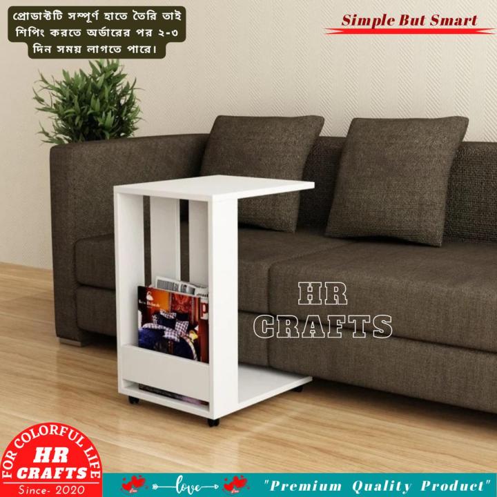 Portable Laptop Stand-Laptop Table-Side Table 23.6'' Tall C Table-End Table-Color White Black & Wood-HR CRAFTS