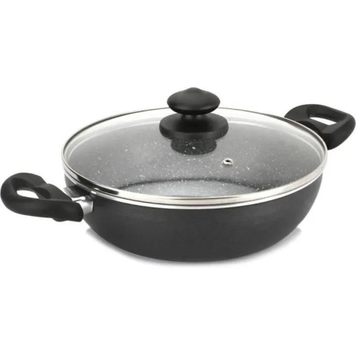 Prestige Omega Deluxe Granite 24 Cm marbel coating NonStick Kadai With Lid Black Aluminium Kadhai & Wok in Black Colour by Prestige