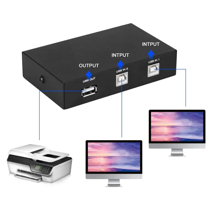 Printer Sharing Switch Hub for 2 PC - 1 Printer-Black