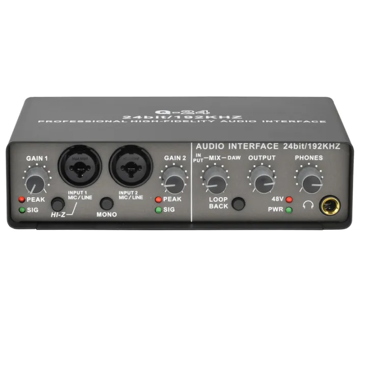 Professional 24Bit 192KHz Audio Interface 2 Input Sound Card for Electric Guitar Loopback External Studio PC Recording Durable Easy Install