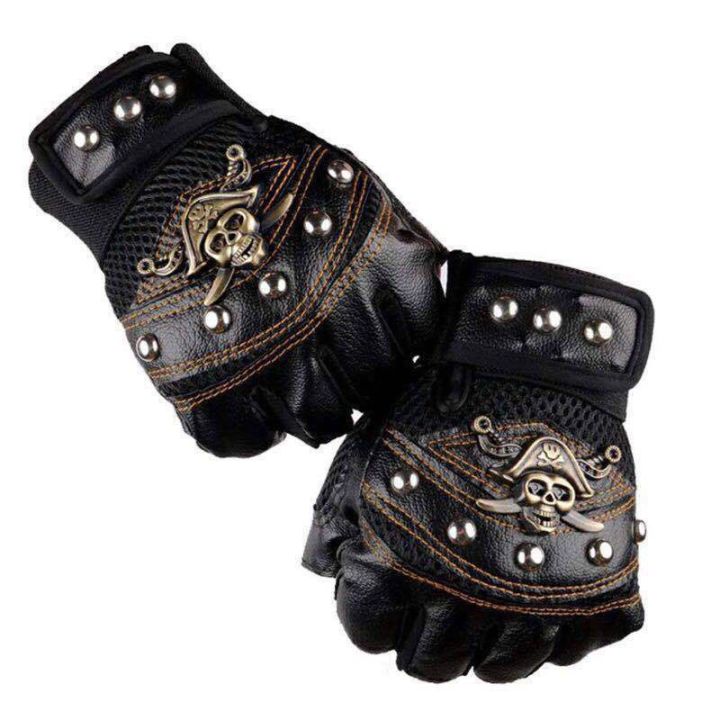 Skulls Rivet PU Leather Fingerless Gloves Men Women Fashion Women's Gym Punk Gloves Half Finger Men's Gloves
