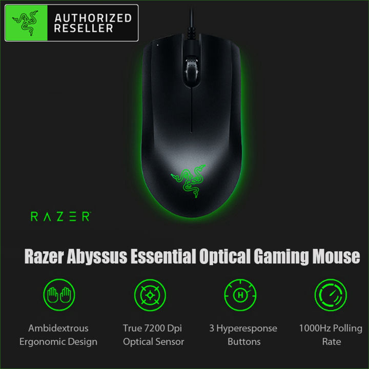 Razer Abyssus Essential Optical Gaming Mouse w/True 7200 DPI Optical Sensor/3 Hyperesponse Buttons Powered by Razer Chroma Ambidextrous Ergonomic Wired Computer Mice for Windows PC Gamers