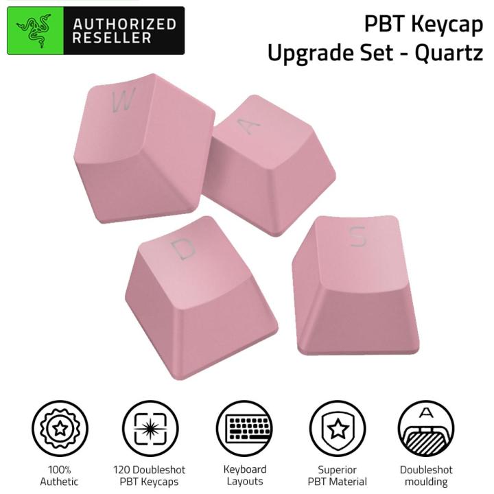 RAZER PBT Keycap Upgrade Set Backlight Compatible Doubleshot Molding With Ultra-Thin Font 120 KeyCaps Pink/White/Black/Green