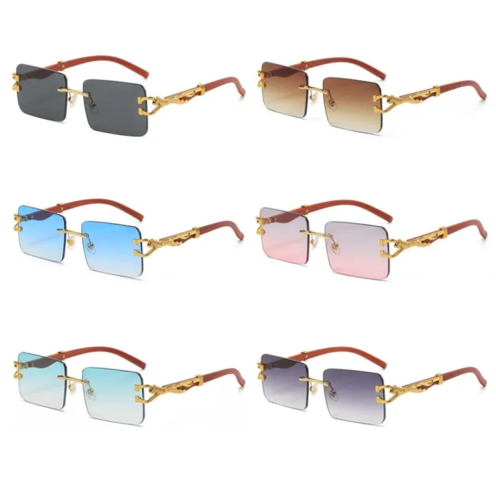 Rectangle Rimless Sunglasses Men Women Luxury Brand Designer Leopard Sun Glasses Driving Eyewear Shades UV400