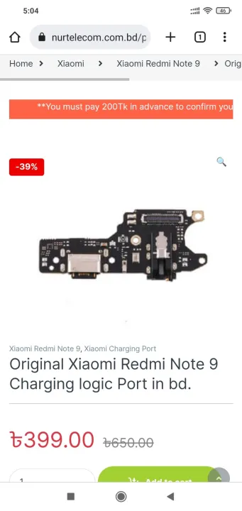 Redmi note 9 charging logic board