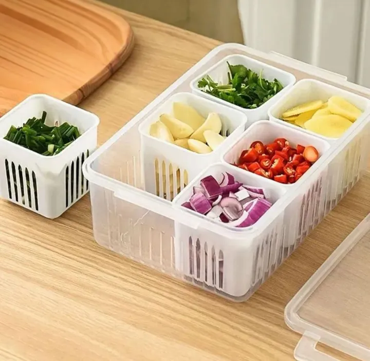Refrigerator%20Storage%20Box%206%20Grid%20Food%20Vegetable%20Fruit%20Storage%20Box%20Fridge%20Organizer%20Drain%20Basket%20Meat%20Onion%20Ginger%20Clear%20Crisper%20-%20Image%201