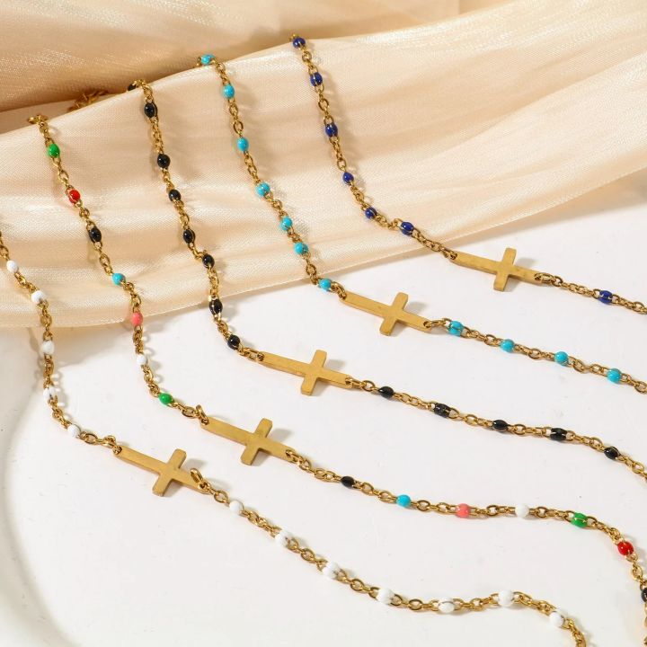 Religious Stainless Steel Cross Charms Bracelets Women Girls Gold Color Metal Link Chains Party Club Jewelry Gifts,18cm Long
