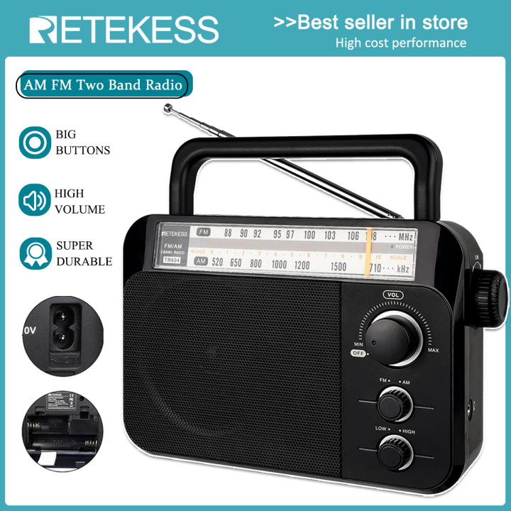 Retekess TR604 AM FM Portable Radio with Best Reception AC 220V Powered with Clear Dial and Large Knob for Home(Black)