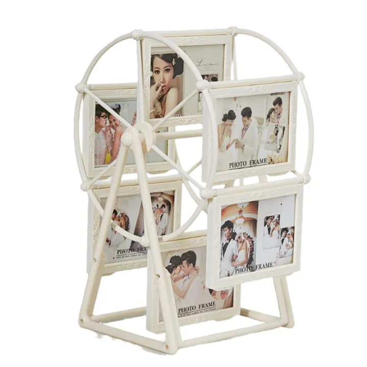 Retro Vintage Rotating Wheel Picture Frame, Personalized Family Photo Frame Shows for 12 Photo Home Decor A