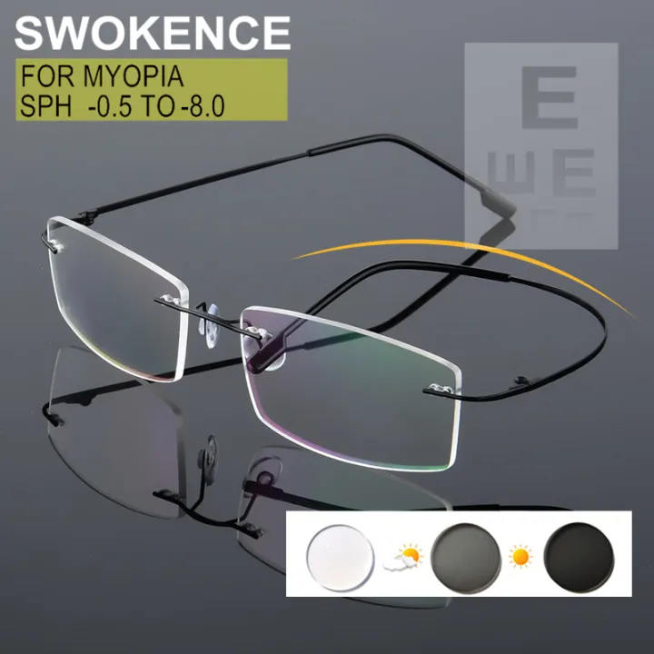 Rimless Myopia Glasses Prescription -0.5 to -8.0 Women Men Metal Frame Blue Ray Proof Chameleon Lenses For Shortsighted F085