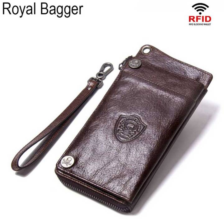 Royal Bagger Long Wallet for Men Cow Leather Fashion RFID Clutch Bags Zipper Coin Purse Business High Capacity Multi-Card Card Holder