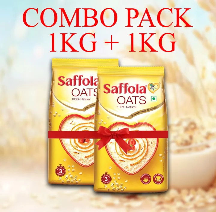 Saffola Oats | Rolled Oats Healthy Cereal for weight loss | 1Kg +1Kg Combo