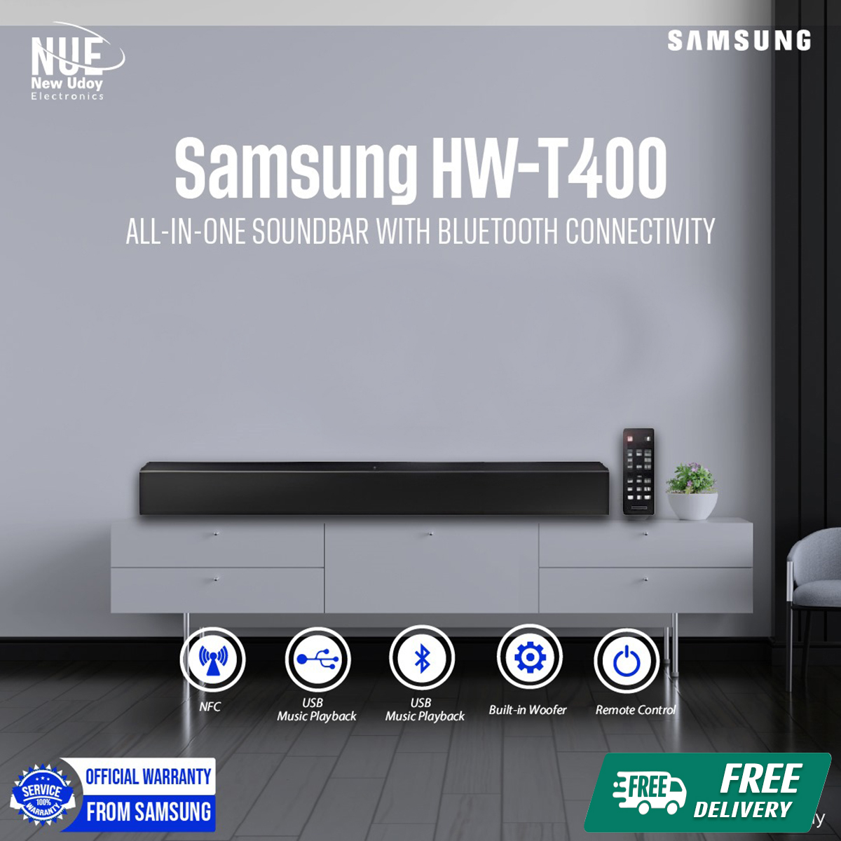 Samsung HW-T400/XL 2ch All-in-one Soundbar With Bluetooth Connectivity with Free Delivery