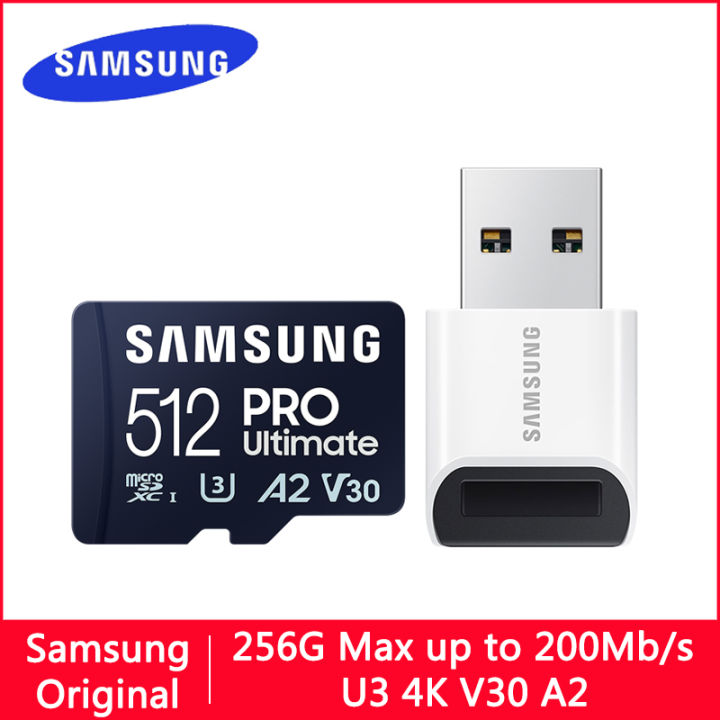 SAMSUNG PRO Ultimate Micro SD Card 128gb SD Memory Card Reader U3 4K V30 A2 Memory TF Card 512GB 256GB High Speed 200M/s For PC