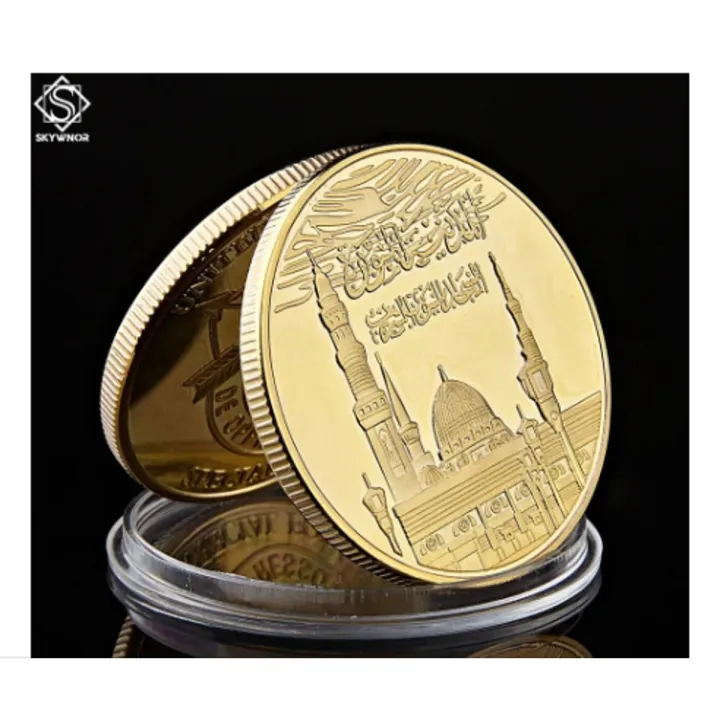 Saudi Arabia II Islam Gold Plated Metal Coin Muslim Haj Allah Bismillah Koran Souvenir Replica Coin Collections