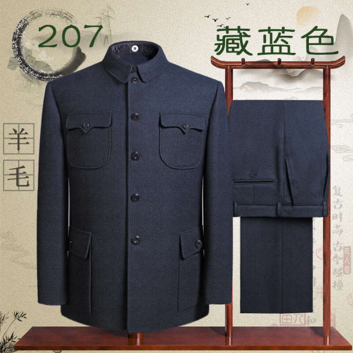 Sheep wool men, middle-aged and loose fitting Zhongshan suit set the elderly, Chinese style formal dress for men