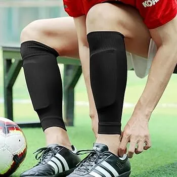 Shin Guard Sock - Leg Performance Support Football Compression Calf Sleeves With Pocket (2 Pcs)
