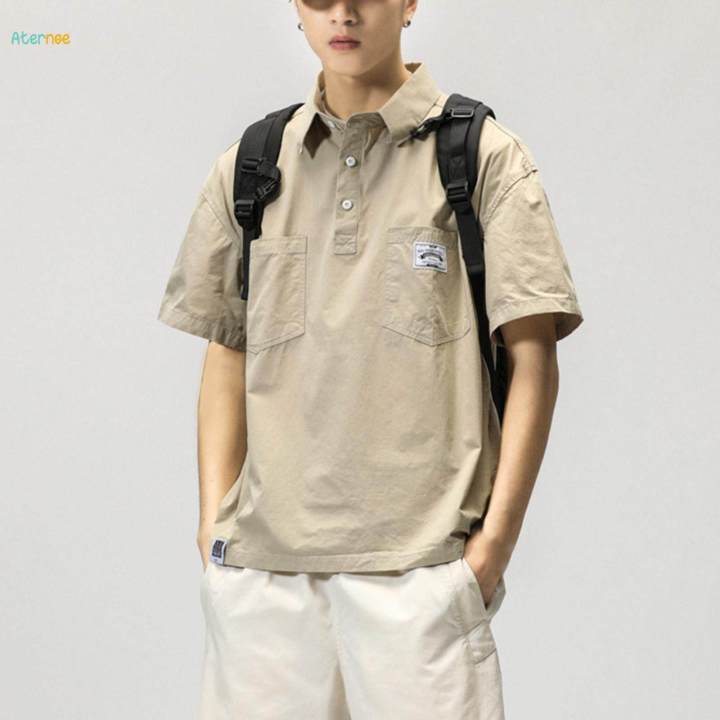 Short Sleeve Shirt for Men Stylish Regular Fit Summer Mens T Shirts Pullover 3XL Beige