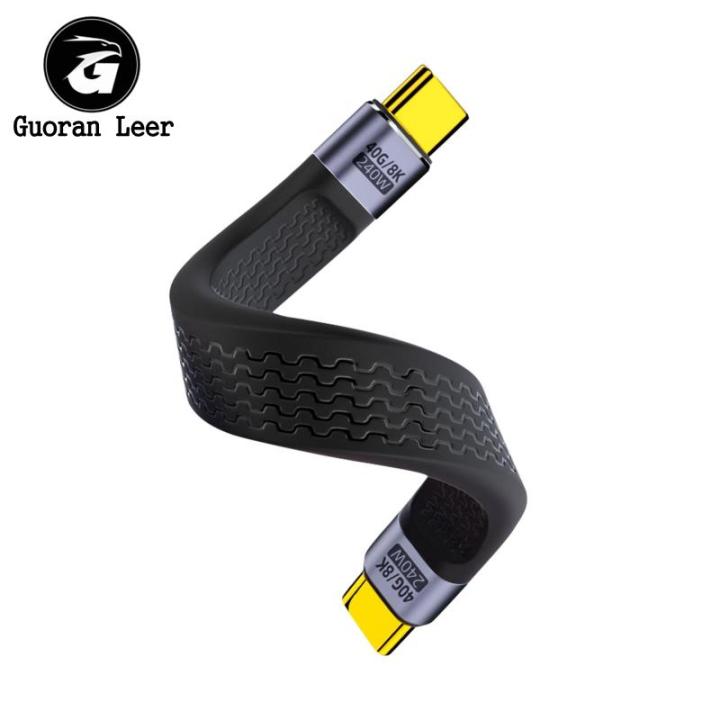 Short USB C To USB C Cable USB 4.0 40Gbps Data Cable Flat FPC Design Supporting 8K Display 240W Fast Charge Cable For Laptop Phone 13cm