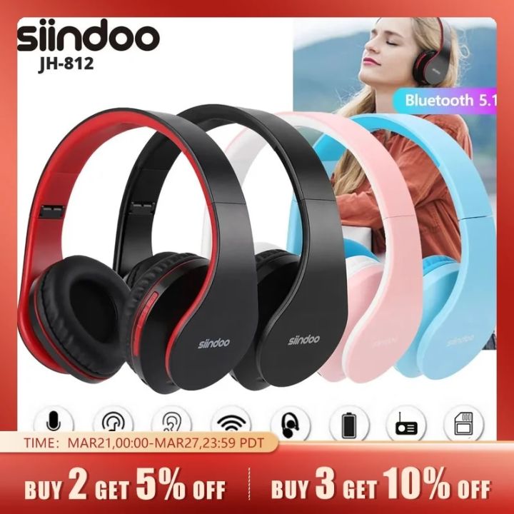Siindoo JH-812 Wireless Headphone Foldable Stereo BT5.1 Earphones Music Headset FM and Support SD Card with Mic for Mobile PC TV