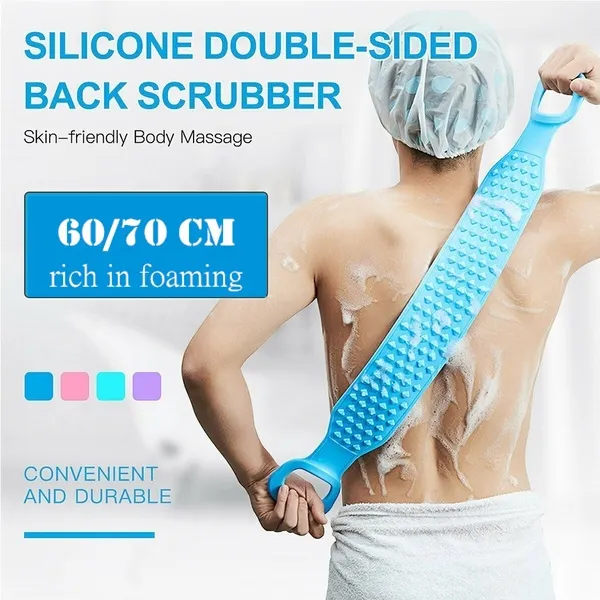 Silicone Bath Body Brush, Exfoliating Long Silicone Body Back Scrubber Double Side Body Brush Back Washer for Deep Cleaning Bath Towel Brush