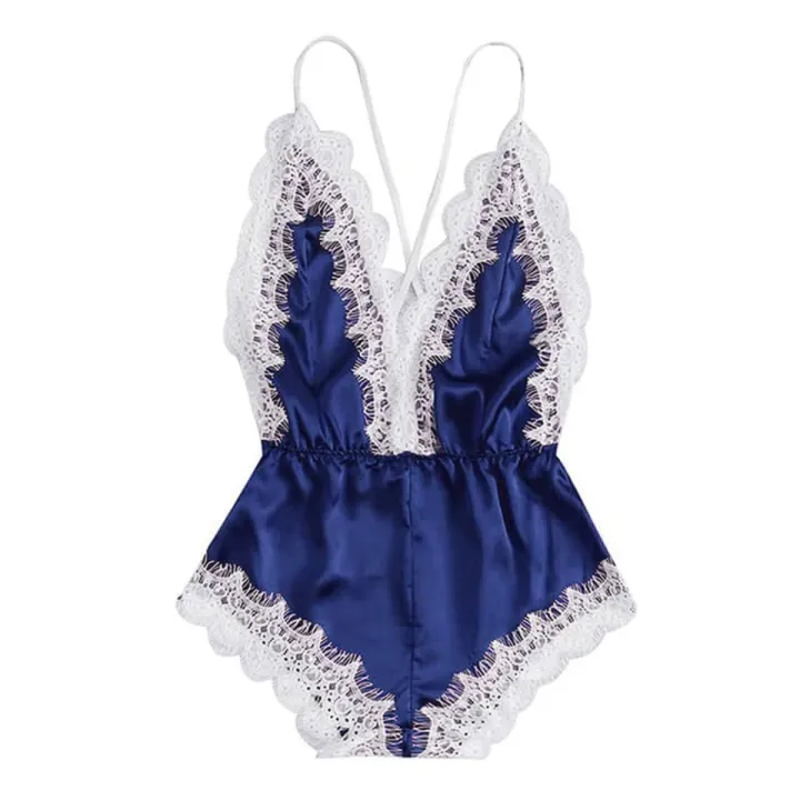 Silk Solid Satone Bikini Night Dress With Lace Work