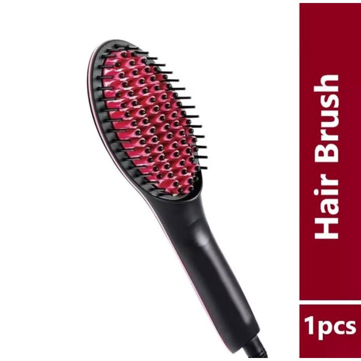 Simply Straight Ceramic Hair Straightening Brush-Black/Pink