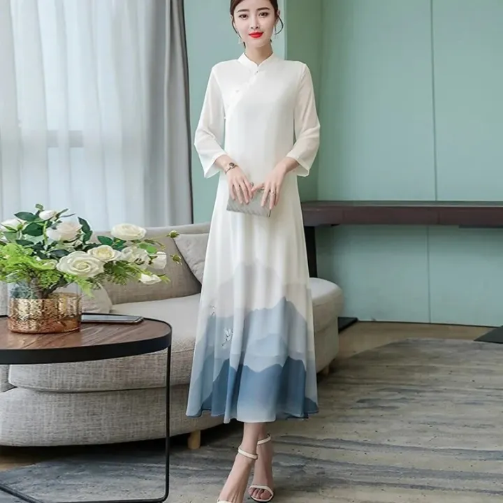 Slim Vintage Long Qipao Hanfu Women Chinese Traditional Dress Cheongsam Robe Orientale Vestido Chino Mujer Modern Clothes TA1679