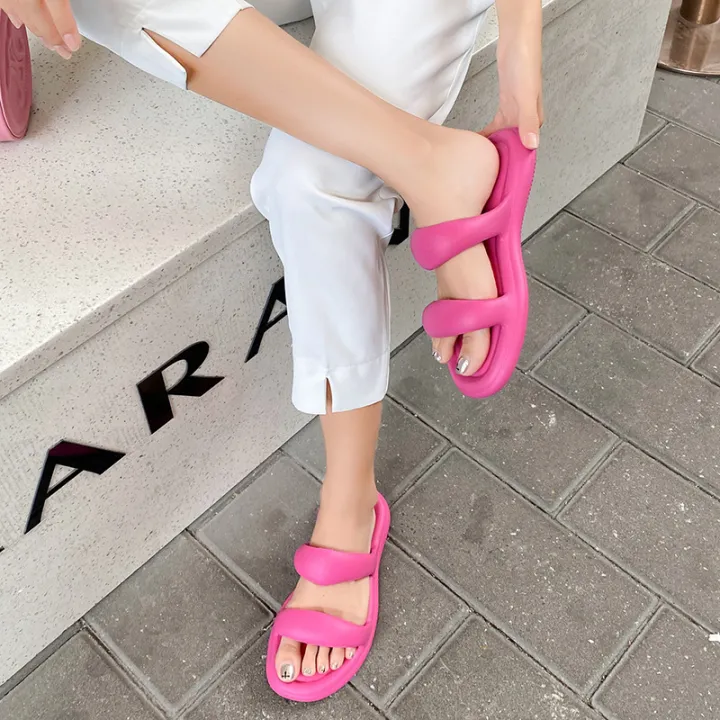 Slippers with a sense of, female Internet celebrities ins, tide bread, wear double belts, flat soles, soft soles, European and American style trend, EVA sandals