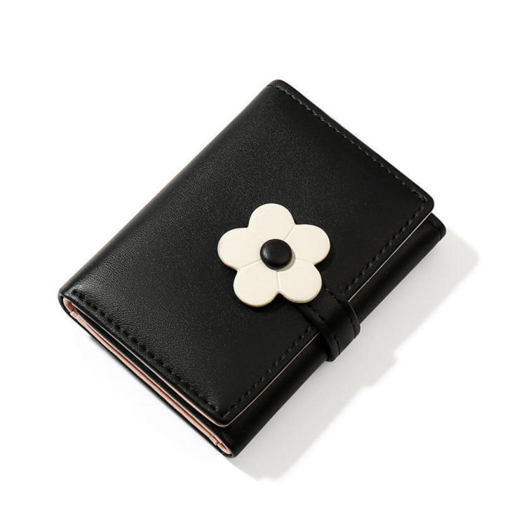 Small Card And Coin Wallet For Girls Printed Wallet For Girls With ID Card Window Cute Three-fold Wallet For Girls Flower Printed Wallet For Girls Women's Cash Bag With Card Coin Compartments