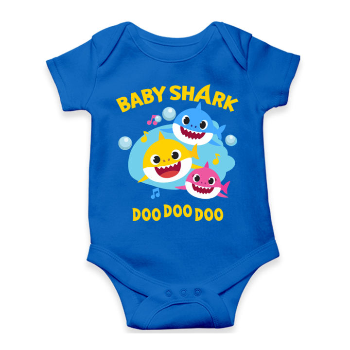 Smartynerdy Blue Cotton Baby Shark New Born Baby Romper and Boys Girls Kids Adult Tshirt