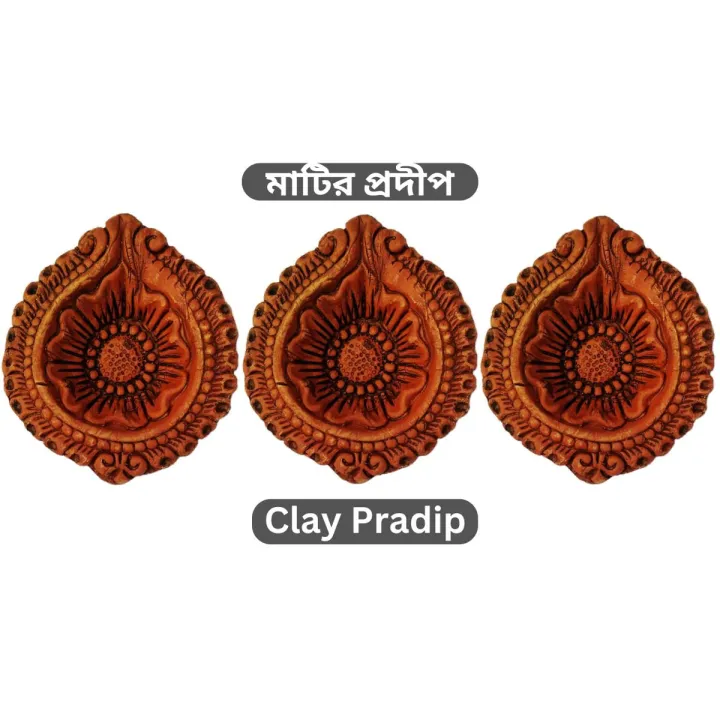 Soil Pradip (3 Piece Set) Terracotta Oil Lamp / Diya Lamp / LED Light / Handmade Traditional Pooja Earthen Clay