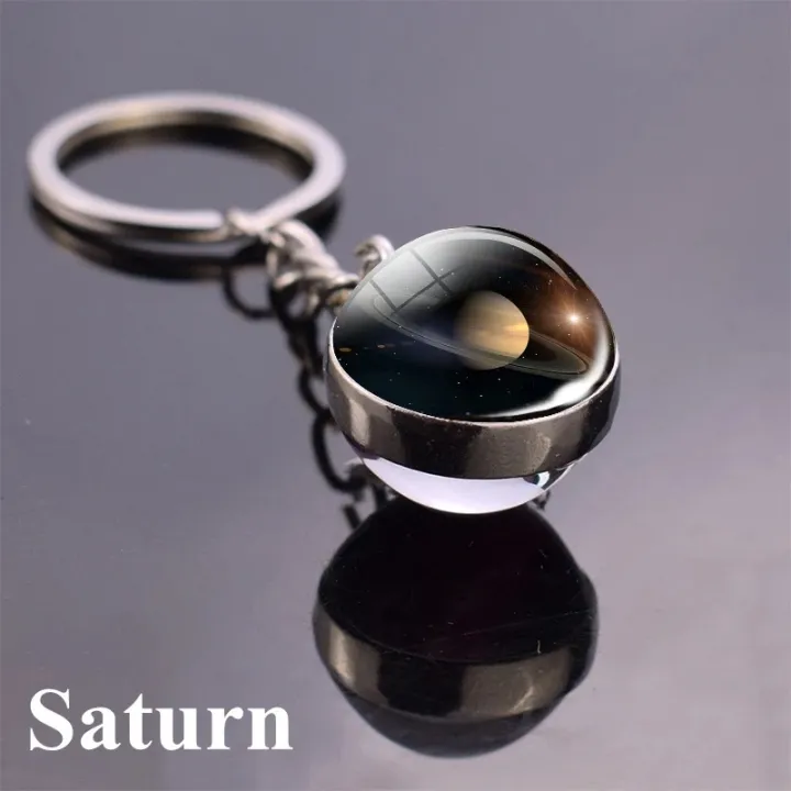 Solar System Planet Key chain Pendant Key Ring Earth Moon Saturn Double Side Glass Ball Key Chain