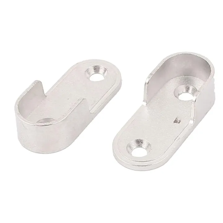 Solid Oval Wardrobe Hanging Rail Rod End Bracket Support Silver Tone Pair