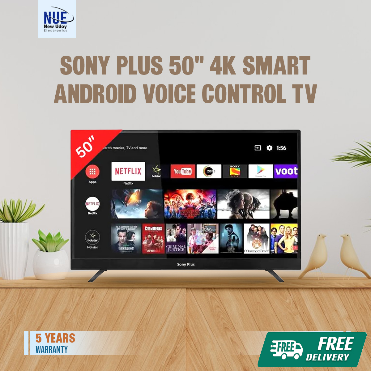 Sony Plus 50" 4K SMART ANDROID voice control TV with Free Delivery