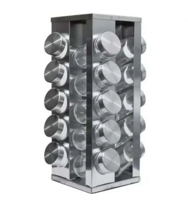 Spice Rack Stand Carousel Rotating Glass 20 Jars