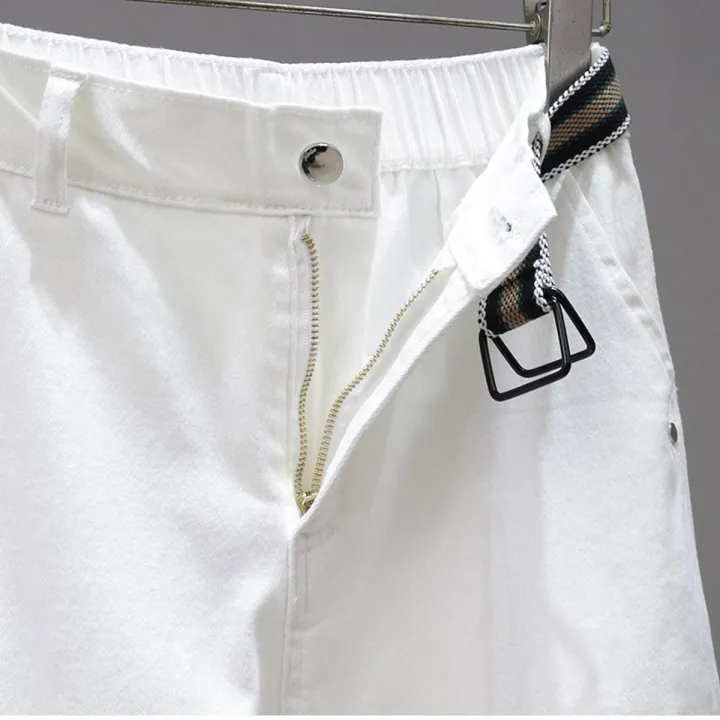 Spring White Multi-Pocket Cargo Pants Women2023Half Elastic Waist Loose Slimming Jeans All-Matching Harem Pants Women