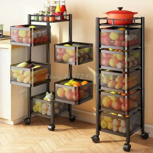 Stainless Steel 5 Layers Kitchen Rotating Shelf 360 Degree Baskets Fruit Vegetable Storage Rack Floor Round Shelf with Wheels