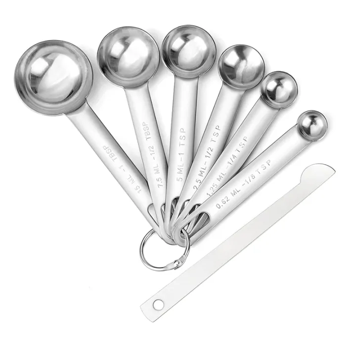 Stainless Steel Measuring Spoons Cups Set, Small Tablespoon, Teaspoons, Set 6 with Bonus Leveler, for Dry and Liquid