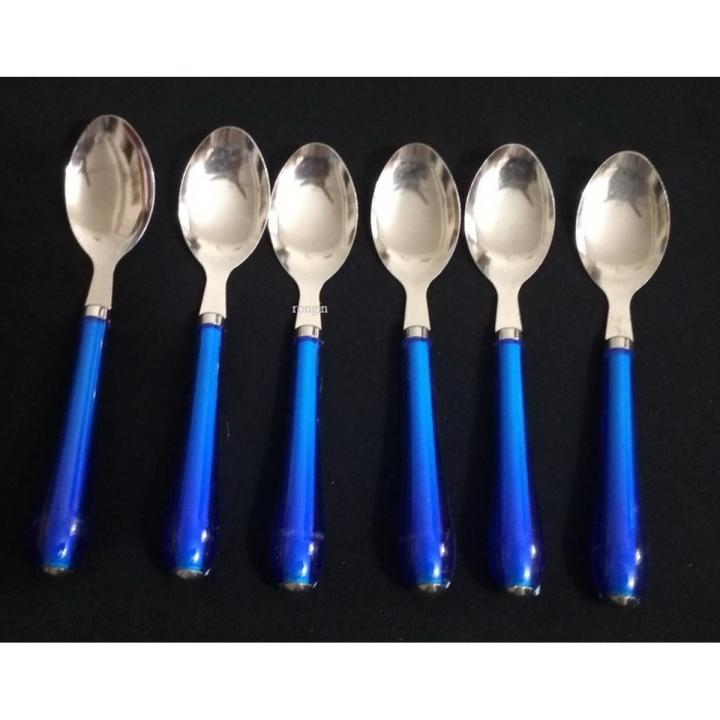 Stainless Steel Tea Spoon Set - 6 Pieces Blue color