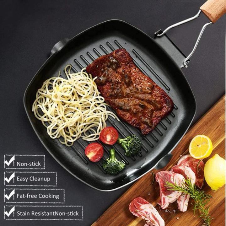Steak Frying Pan Cast Iron Steak Grill Pans Non-Stick Frying Pan Wooden Handle Folding for Kitchen Fry Cooking Steak