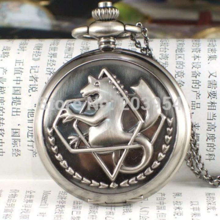 Steel Tone Anime Fullmetal Alchemist Pocket Watch 1pcs/lot 3 Color Cosplay Edward Elric with Chain Boys Gift Wholesale