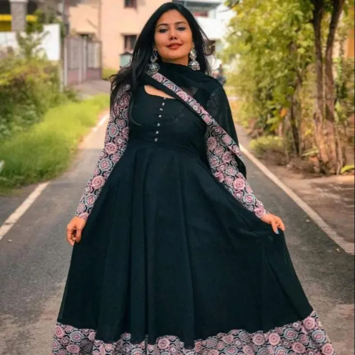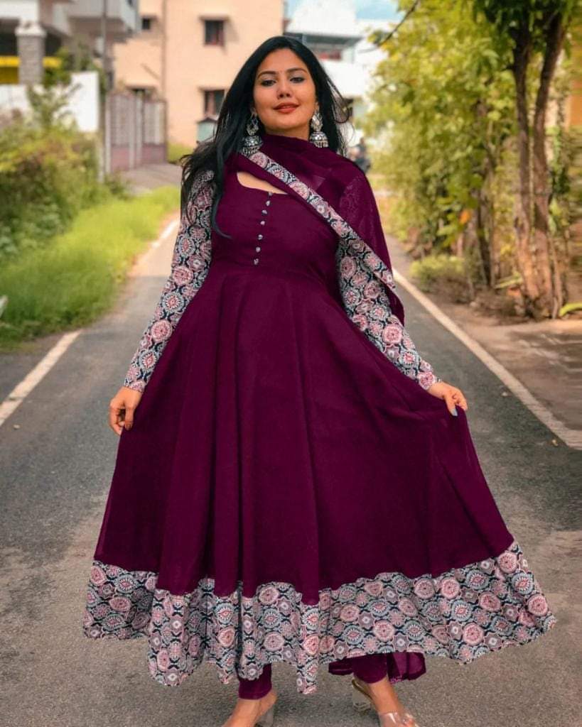 Stylish Addition - Linen Fabrics EID Collection Readymade Skin Print Gown Three Piece For Girls/Women. - Sustainable Choice